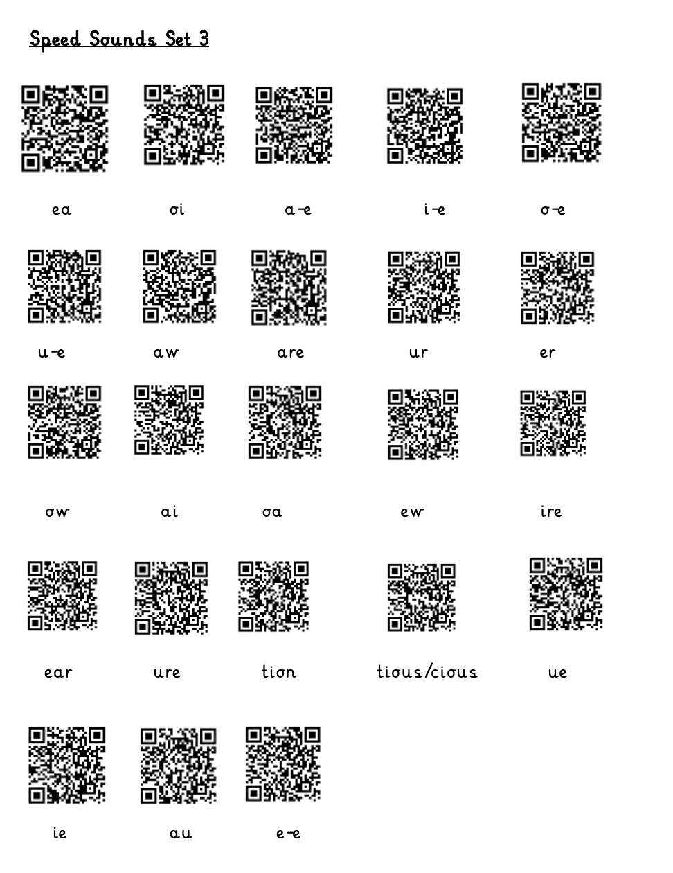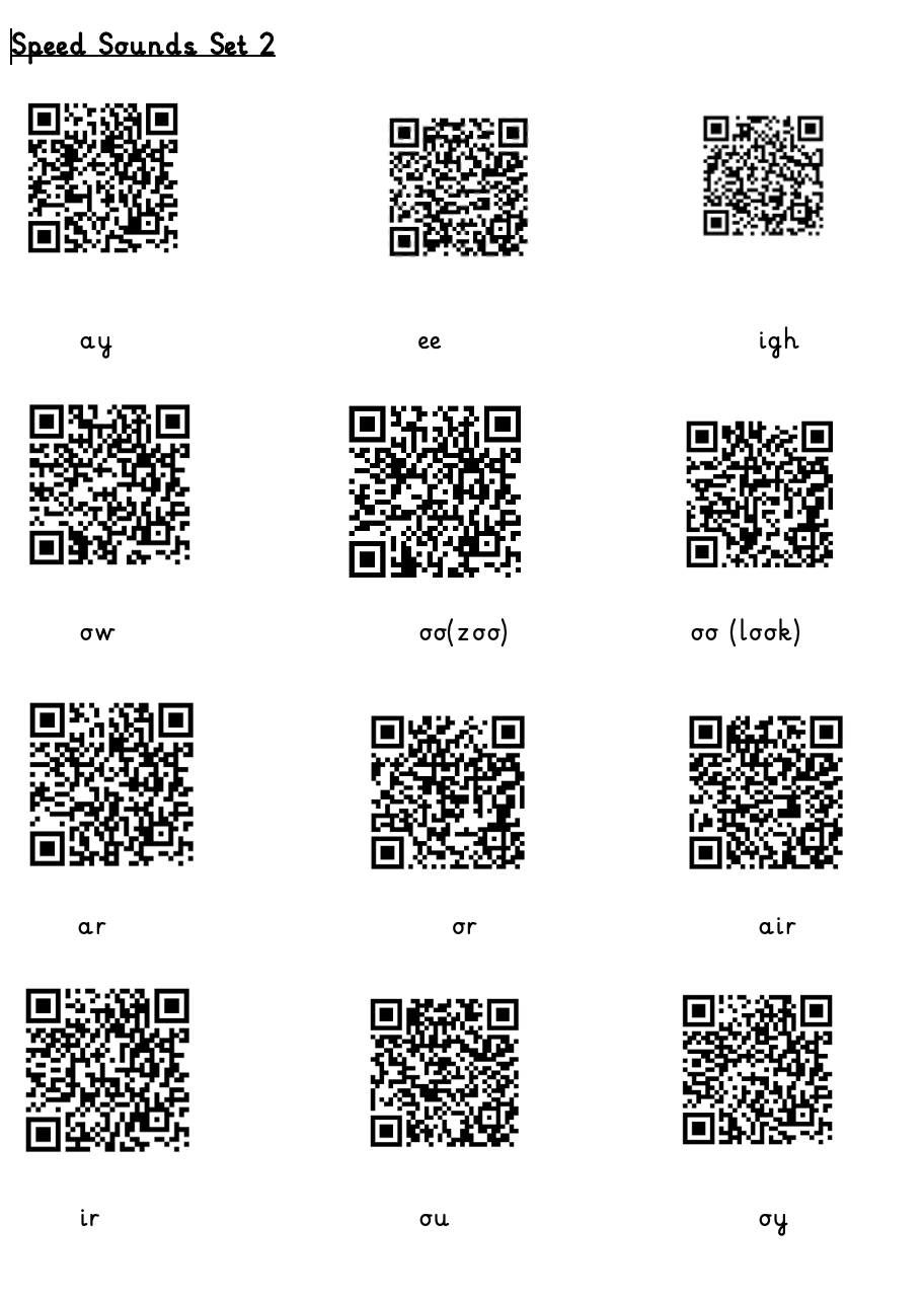 Phonics in year 2. Please use the following QR codes to access fun videos so children can learn from home.