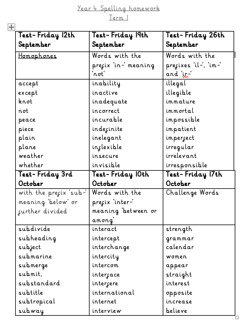 Wednesday 20 September 2023 Year 4 Parent meeting