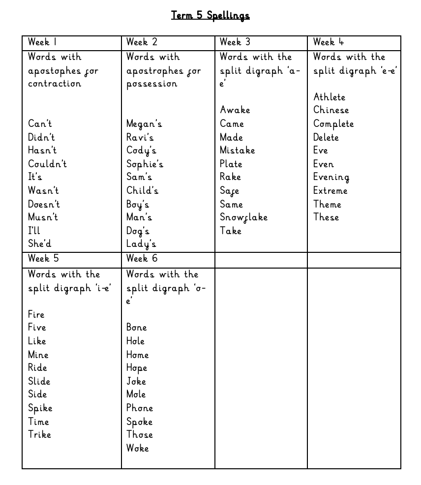 Tuesday 4 March 2025 Term 4 spellings Attached is a link to year 2's spellings for the term.
